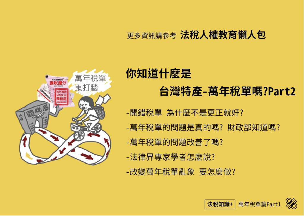 萬年稅單是什麼? Part 1 萬年稅單是什麼? Part 2 稅務獎勵金秘辛 分享此文: 按一下以分享至 Facebook(在新視窗中開啟) Facebook 分享到 line(在新視窗中開啟) line 按一下以分享到 Telegram(在新視窗中開啟) Telegram 按一下即可分享至 X(在新視窗中開啟) X 喜歡 正在載入...