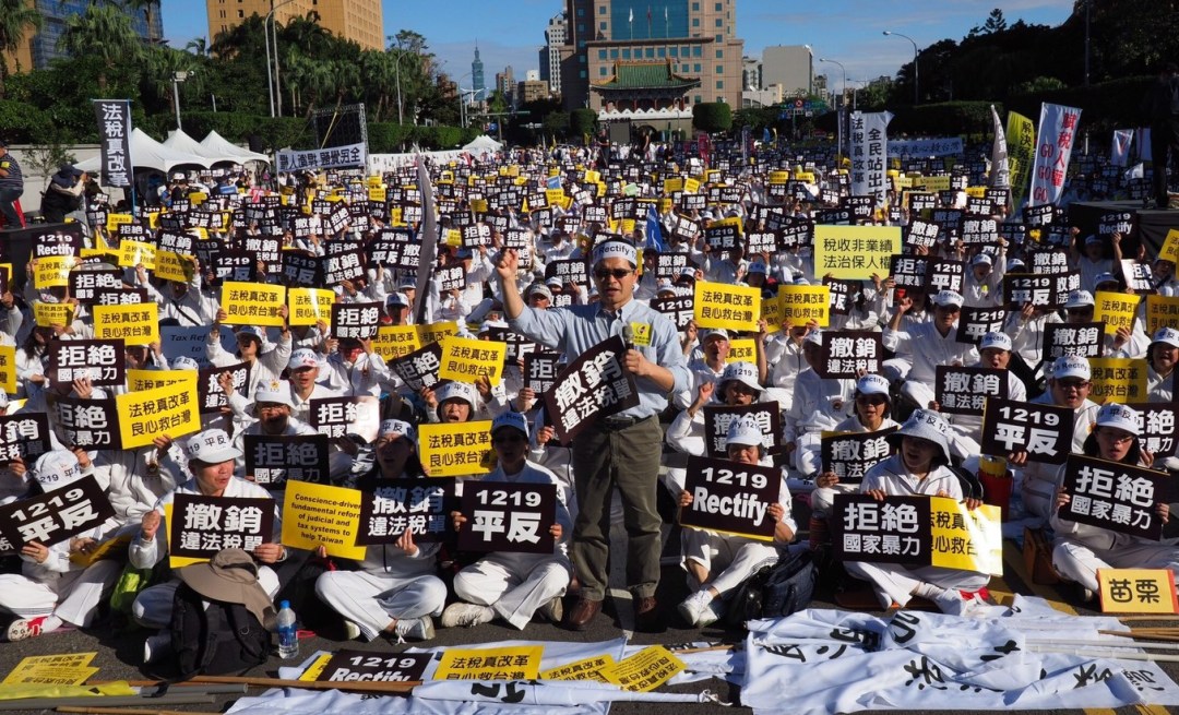 (記者姜艾利/台北報導)連續兩天震撼凱道、喚醒全民稅改自覺的「法稅真改革 良心救台灣」活動,繼續沸騰!12/19當天,適逢太極門冤錯假案20年,凱道上集結了更多想要一起守護台灣賦稅人權、關切法稅正義的民眾,頭上或臂膀繫著綁帶,白底黑字「平反1219 Rectify 1219」的標語,清楚訴求想要透過蒙冤20年的太極門冤錯假案,還台灣法稅青天的決心,也引起各界高度關注。