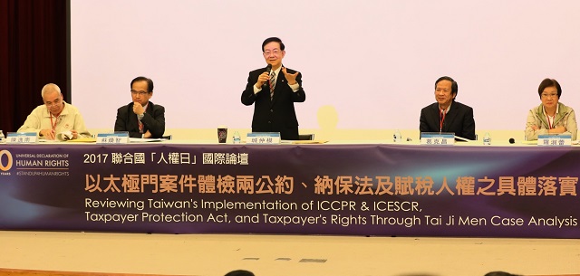 (記者李英修/臺北報導)台灣被邊緣化?曾是亞洲四小龍,亞洲第一個民主國家,如今卻面臨外資卻步、人才外流的困境。政府推動兩公約已經八年了,納保法年底上路,台灣人權大步走?12月10日在國家圖書館演講廳舉行2017聯合國人權日「乙太極門案件體檢兩公約、納保法及賦稅人權之具體落實」國際論壇,由聯合國NGO世界公民總會等共十二個組織合辦,大會一開始播放聯合國人權日的紀念影片,聯合國秘書長古特雷斯發表的致辭表示,《世界人權宣言》規定,各國政府必須承擔責任,確保人民可以享受不可剝奪的權利和自由;並強調「人權是世界人民的護身法寶」。聯合國NGO世界公民總會主席瑞內瓦德羅Rene Wadlow博士,以及研究太極門案近兩年的美國天普大學法學教授暨知名人權律師Kenneth Jacobsen,分別剖析太極門案,有許多嚴重違反正當法律程式及侵害人權的地方,並呼籲盡快解決此案,對已經簽署兩公約的台灣在世界各地的形象才會真正有幫助。