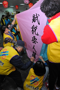 「還我自由!」賦稅要人權!,台灣加油!「國泰民安!」「稅好 睡好 沒煩惱!」