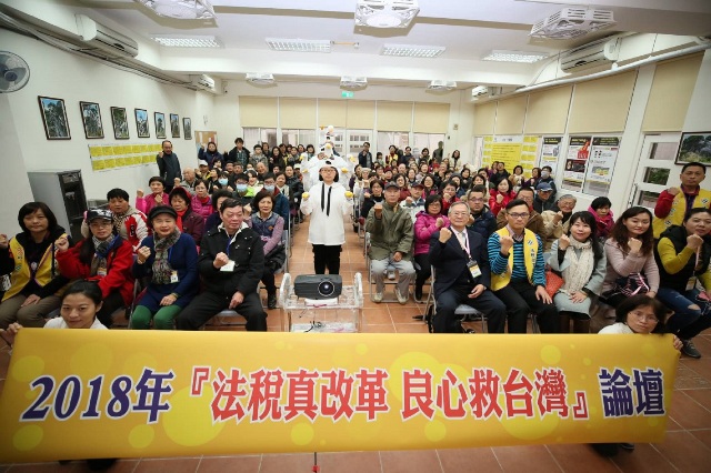2月3日法稅改革聯盟及大安區芳和里、黎元里、黎孝里、臥龍里、黎和里共五里,於嘉興公園區民活動中心舉辦「法稅真改革 良心救台灣」系列論壇——「我的錢被誰A走了?」民眾無懼風雨踴躍參加,現場滿座,甚至多人站著聆聽,芳和里里長黃種榮及黎元里里長柯邱素鑾親自到場,里民均表示收穫良多。黃種榮表示,相當支持法稅改革聯盟的付出和努力。柯邱素鑾說,很感謝法稅改革聯盟志工所做的一切,為了稅制改革,讓稅制環境改善,里民才會有好的生活。