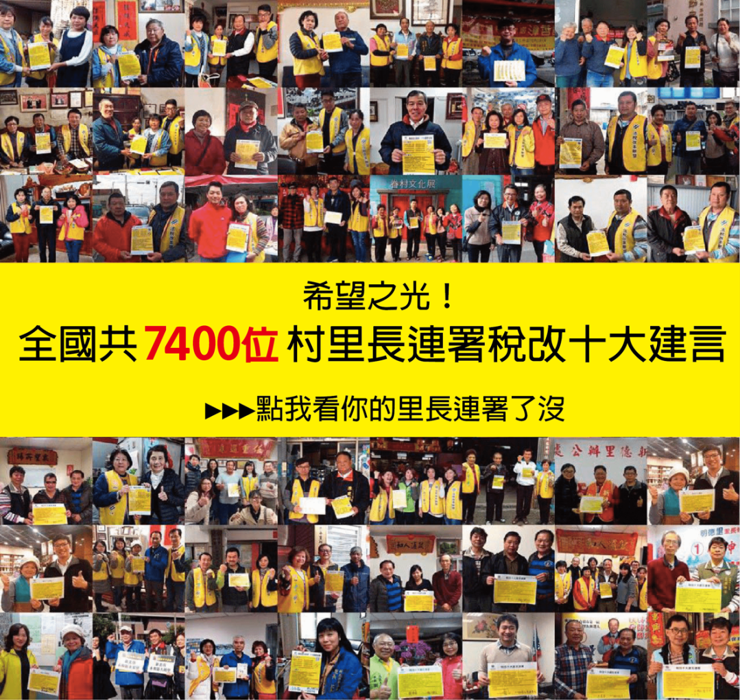 超過7400位村里長加入稅改連署 達到全國95%的連署達成率 我也要連署!請點:https://bit.ly/2kvPsNp 全台已連署里長名單 全台未連署里長名單 全台已連署村長名單 全台未連署村長名單 我也要連署!請點:https://bit.ly/2KKnMvB 分享此文: 按一下以分享至 Facebook(在新視窗中開啟) Facebook 分享到 line(在新視窗中開啟) line 按一下以分享到 Telegram(在新視窗中開啟) Telegram 按一下即可分享至 X(在新視窗中開啟) X 喜歡 正在載入... 相關