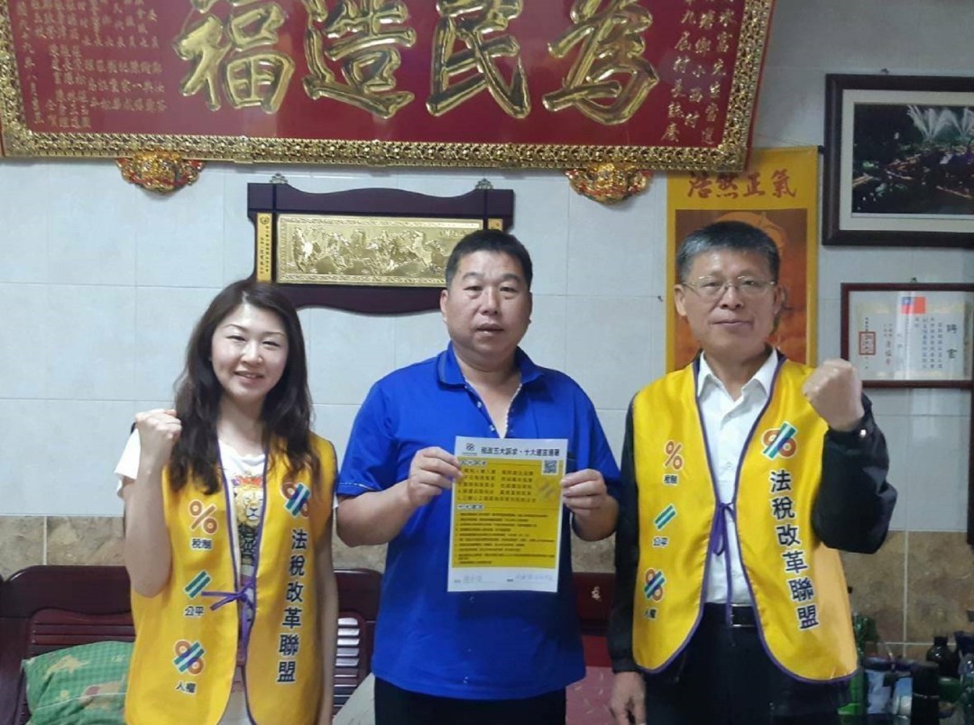 法稅改革聯盟推動「法稅真改革 良心救台灣」,志工全力投入走訪全國各地村里長,希望最貼近民眾的村里長參與稅改五大訴求、十大建言和賦稅人權宣言連署,一起推動法稅改革。住在彰化縣竹塘鄉的詹姓志工有感於法稅改革的重要,全鄉走透透拜訪所有村長,竹塘鄉14位村長百分百已連署,共同為鄉民、為台灣建構公平、正義的稅務環境而努力。小西村村長林永富認為,課稅應該要合理,對法稅改革聯盟志工們的努力,表示敬佩!