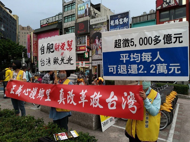 關鍵字「稅」,從哪來?用去哪裡?法稅改革聯盟王姓志工表示,財政部人謀不臧,國庫虧空,不究責議處,反而從納稅人頭上動腦筋,每年編列上億元沒有法源依據的稅務獎勵金,鼓勵開單?烏龍稅單滿天飛,法稅改革聯盟接獲無數稅災戶的控訴,集結成冊,一位吳小姐補習班沒買成卻被追補習班以前的稅,追得病痛纏身;公益律師不甘做公益還成稅災戶,差點跳樓輕生;不堪國稅局「多少繳一點」,醫院關門……,成千上萬在暗夜哭泣的稅災戶成了彌補國庫虧損的冤大頭,公理何在?