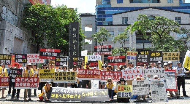 5月27日下午,在法稅改革聯盟號召下,上萬民眾帶鬧鐘上街頭,以各種聲響「ㄉㄧㄤ」醒政府,Wake up財政部,全民通通「稅」醒。當天氣溫高達38.2度,有一群法稅改革聯盟的志工先集結在民眾積怨最深的台北國稅局,拉起布條「國稅局長許慈美,踩著人民的鮮血升官,你睡得安心嗎?」、「說謊部長許虞哲下台」,志工高喊「廢除稅務獎金」、「撤銷違法稅單」、「法稅真改革 良心救台灣」、「稅官沒天良 全民要覺醒」吸引開車路過的民眾紛紛詢問,更有民眾豎起拇指鼓勵。