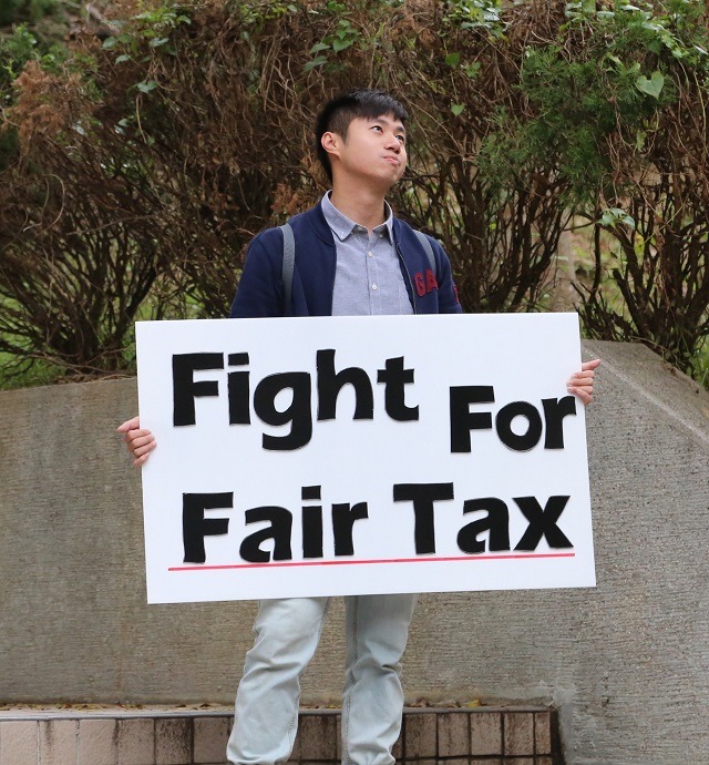 為此,法稅改革聯盟的志工呂同學,走訪鄉里,參與各項法稅改革相關活動,還走上街頭,並前往一府五院陳情,呼籲政府應學習南韓、新加坡的例子將超徵的錢還給人民。