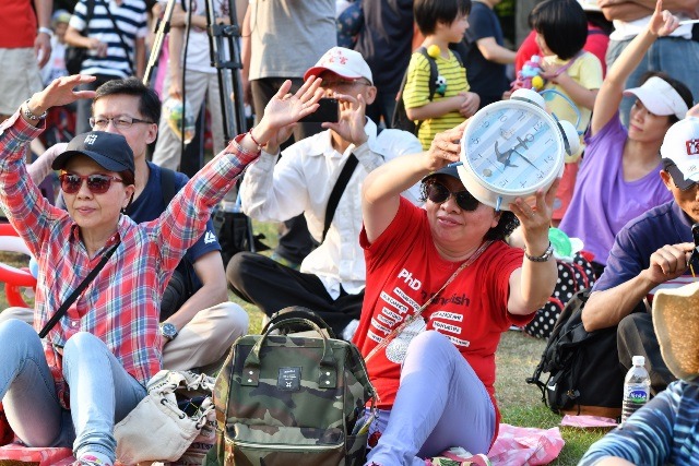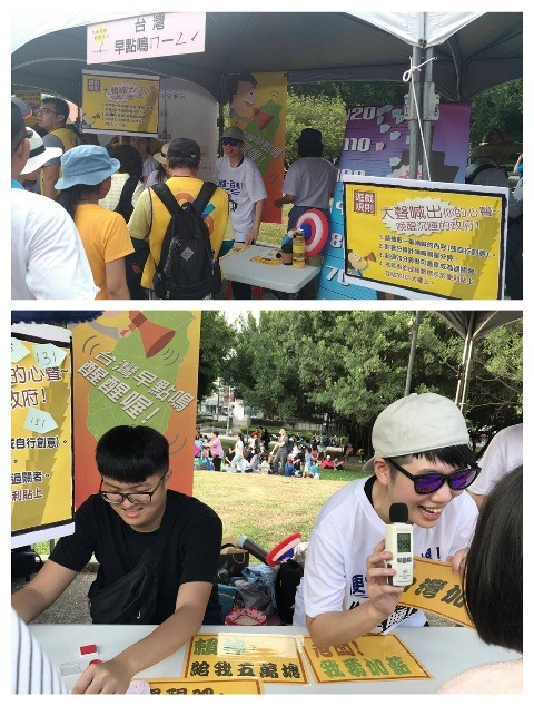 5月27日下午,法稅改革聯盟等單位舉辦「全面睡醒 翻轉未來 Wake up, Taiwan!」大遊行及草原音樂會,邀請民眾帶著鬧鐘上街頭大喊「Wake up Taiwan!」希望把政府、財政部、全民通通叫醒,活動吸引近萬民眾參與。在華山中央藝文公園現場有許多好吃好玩的攤位,在在可見年輕人的創意。當天38.2度的艷陽下,最受大小朋友歡迎的就是千杯的仙草冰,「千杯」「謙卑」人手一杯,相視一笑。闖關攤位「台灣早點鳴ㄇㄧㄥˊ」,讓闖關者選擇心中的訴求字卡——「賴神,給我五萬塊」、「老闆,我要加薪」、「台灣加油」等等,高分貝的喊出心中的訴求,叫醒昏睡的政府,希望明天會更好。