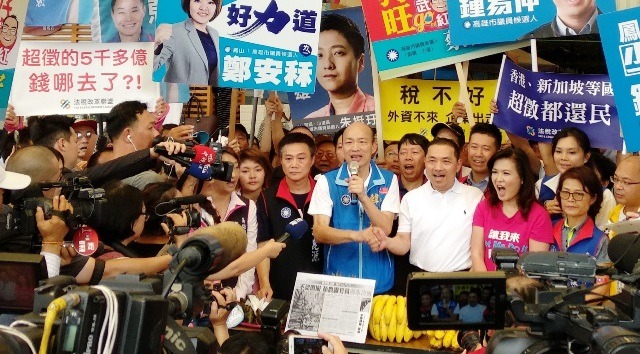 買菜族不忘法稅宣導,今天(6月1日)一群法稅改革聯盟志工出現在高雄市苓雅區國民市場北高二位候選人聯手造勢的場面,舉牌「超徵的5千多億 錢哪去了?」、「香港、新加坡等國 超徵都還民」、「稅不好 外資不來 企業出走」,希望表達超徵還民、財政部稅制要透明的訴求,除國民黨高雄市長參選人(中國國民黨高雄市主委)韓國瑜已連署稅改宣言,現場高雄市議員黃紹庭、曾麗燕,市議員候選人蔡武宏、陳若翠,以及里長參選人安可宏等也連署參與推動稅制改革。