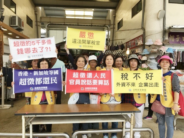 法稅改革聯盟志工徐媽媽表示,薪資倒退17年,現在買菜都要省吃儉用,財政部四年來(2014至2017年)竟然超徵5千多億,這些超徵款本來就應該退還人民,每人2萬2,對買菜族或菜農不無小補,也可讓全家打打牙祭或旅遊,提振國內消費,目前「超徵還民」議題正夯,不分黨派皆共同推動。