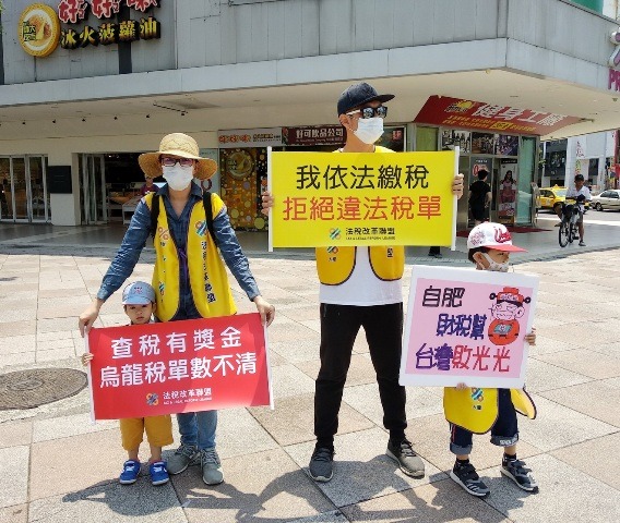 法稅改革聯盟戴姓志工指出,台灣因為稅制不公,經濟衰退,全民薪資倒退17年,財政部卻年年超徵,又不敢公布超徵明細,哪些是惡意查稅而來?還把違法超徵當政績,一開始說還國債,又說給縣市政府發紅包,現在又說減少舉債,財政部說謊不打草稿,把台灣人當兒耍!