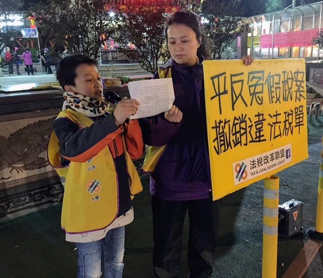 「自己的將來自己救!」郭小姐於是帶著兒子一起推動法稅改革,大街小巷的宣導賦稅人權,呼籲全民一起團結起來推動稅改,提升台灣經濟,讓孩子不用出走台灣,讓天倫相聚不遙遠。