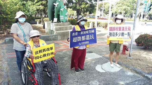 法稅改革聯盟近日於高屏地區宣導正確法稅觀念,呼籲「超徵還民、廢除稅務獎勵金、撤銷所有違法稅單」,並邀請民眾上網連署共同推動「稅改十大建言」、「稅改五大訴求」、「賦稅人權宣言」