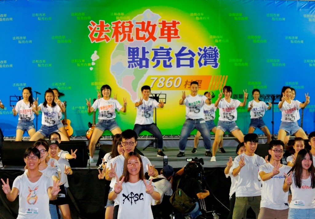 【Young Power!! 法稅改革 點亮台灣】行動晚會由法稅改革聯盟(臺灣財經刑法研究學會、真理大學法律學系、真理大學法律扶助協會、中正大學財經法律研究中心、台灣北社、中華人權協會、全民拒吃大便聯盟、賦稅正義青年團、稅改青年陣線、1219行動聯盟)、台灣陪審團協會、全國被害人人權服務協會、台灣永社、新北市公道正義服務協會籌備處等十多個民間組織合辦,活動高潮迭起,表達民間呼籲稅改的廣大心聲。