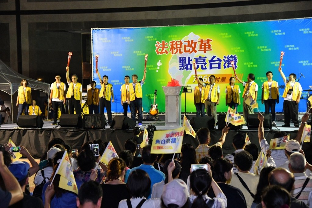 點亮台灣每一里!拒絕天災人禍摧殘台灣人,2018年9月1日(六) 18:00-20:30【Young Power!! 法稅改革 點亮台灣】行動晚會在新北市板橋第一運動場運動廣場舉辦,由青年世代發起的法稅改革浪潮,現場聚集八千多位民眾,新北市及台北市超過一百位里長及民代,還有從各縣市趕來的村里長一起大會師,立法委員羅明才、新北市議長蔣根煌派主任任儒強及超過30位市議員及市議員候選人,代表民進黨、國民黨、新黨、時代力量、無黨籍等到場參與,讓台灣掙脫水災、稅災的苦難,這場晚會是全台第一場,特別為台灣祈福-全場靜心一分鐘,並以祈福話語撫慰水災災民。現場啟動稅改聖火環島行動,由法稅改革聯盟發起人陳志龍等專家學者、民代點燃環島聖火,交棒給來自11所大學的12位青年代表擔任聖火大使環島祈福,六都各地將持續接力舉辦,翻轉台灣創造希望!