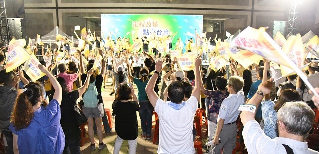 法稅改革聯盟及百位村里長、各黨代表超過30位市議員、市議員候選人及民代於日前在新北市板橋第一運動場為「法稅改革,點亮台灣」大會師,並有專家學者到場為賦稅正義開講。活動高潮迭起,感動人心,台下民眾不斷高喊「法稅改革 終結稅災」、「搶救低薪 超徵還民」、「選賢與能 點亮台灣」。現場稅災戶說:「現在稅務改革是當務之急,且是台灣廣大民意,如果候選人沒有注意到,就是跟自己選票過意不去。」