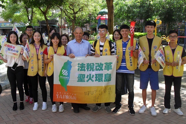 「加入我們就是帥」、「今年夏天我們環島中」,年輕人搞創意、護送環島聖火為台灣祈福,法稅改革希望聖火3日抵達新北市新莊區,將希望聖火傳遞到新莊區里長聯誼會施明進主席手中。施明進主席擔任新莊區後港里里長超過36年,服務鄉里、獲獎無數,深受地方里民與長官的敬重。看到這群青年人的來到,不僅感謝,更為他們加油。
