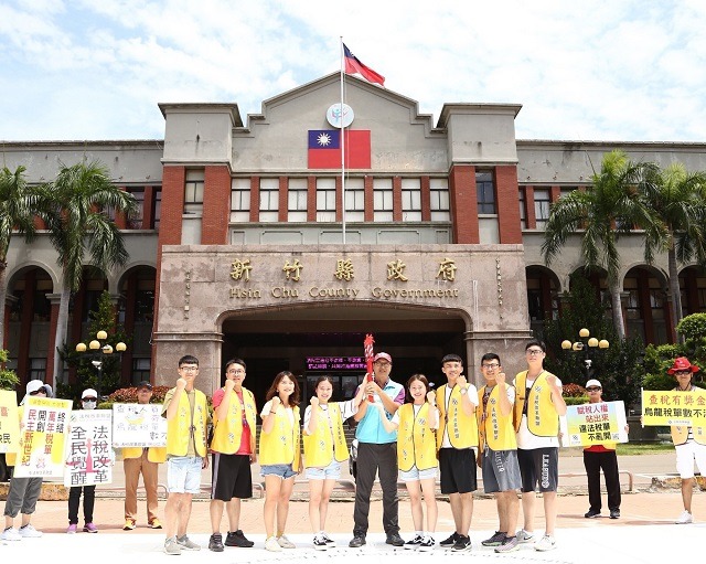「Young Power!法稅改革 點亮台灣」在9月1日由來自全省近萬位民眾與百位里長,在新北巿板橋第一運動場轟動展開「稅改聖火 環島行動」。聖火象徵正義光明,12位騎摩托車的年輕人,扮演稅改使者啟動環島,帶給全台灣祝福與希望,希望全國7,860村里,不再有闇黑稅災。9月2日他們從台北101大樓前出發,經過桃園、中壢,在9月4日來到新竹縣政府與城隍廟,稅改使者與稅災戶蕭小姐在新竹鄉親的見證下,狀告城隍爺;國稅局不遵照法律,亂開烏龍稅單,讓台灣稅災氾濫,百姓痛苦不堪。