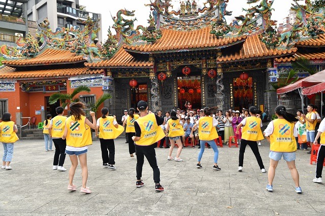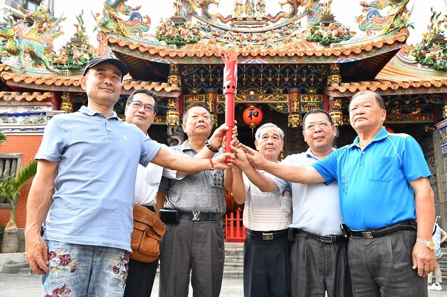 緊接著來到新北市中和區超過250年的福和宮前廣場,現場聚集許多當地里民與里長們一起迎接聖火,當青年志工將聖火傳遞給里長時,里長們除祈願國泰民安、風調雨順,也為志工們加油打氣。