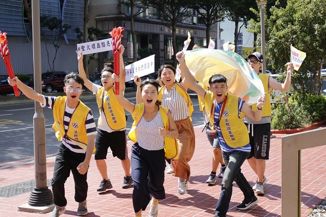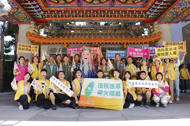 「Young Power!法稅改革點亮台灣」行動於9月1日晚上在新北市板橋第一運動場啟動,法稅改革聯盟來自11所大學的12位青年代表擔任聖火大使展開環島,為台灣祈福,讓百姓免受稅災之苦!桃園市市長鄭文燦以及議長邱奕勝在年初即完成稅改連署,全市超過97%的里長也完成連署。9月3日當稅改聖火環島隊伍到桃園市,市長特地指派市府副祕書長陳靜航迎接聖火,同時結合桃園土地公文化特色,由民眾裝扮土地公、土地婆共襄盛舉,一起點亮美麗桃園,終結「稅災」!市府副祕書長陳靜航表示,感謝大家,感謝法稅改革聯盟志工,還有感謝大學生,在暑假前參與這項有意義的活動,一定會有很好的回憶,也希望透過聖火的傳遞,讓政府能有更公平的法稅,更符合人權。