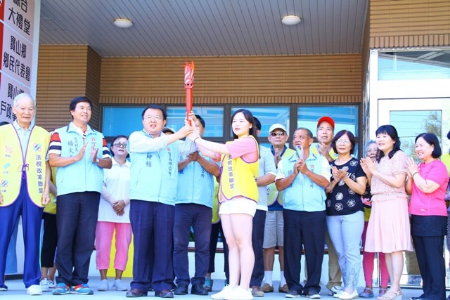 法稅改革聯盟自9/1啟動的「稅改聖火 環島行動」持續在各縣市鄉里間熱烈展開。9/14聖火來到新竹縣寶山鄉,全國第一個全鄉完成稅改連署的寶山鄉,一早鄉長邱坤桶帶領寶斗村長張錦城、新城村長黃振銘、深井村長鍾煥清、山湖村長劉家良、大崎村長楊火炎5位村長從青年志工手上接下聖火,高呼「法稅改革,聖火傳遞,點亮寶山,Go!Go!Go!」齊心傳遞稅制改革的力量與希望的種子到寶山鄉的10個村。