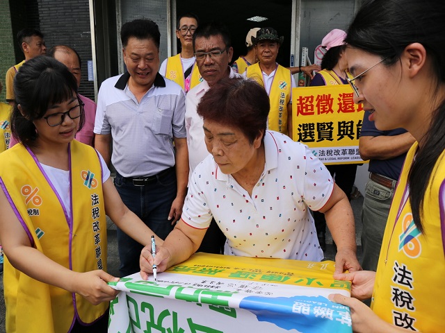 台灣稅制不合理、不透明,導致經濟倒退,外資不來,工作難找,在法稅改革聯盟志工的推動下,「稅改五大訴求、十大建言、賦稅人權宣言連署」,全國7860村里每個村里皆有人連署,象徵百分之百的民意,同時也有7351位村里長參加稅改連署,要求稅制改革、改善台灣經濟體制,並主張退回超徵款每人2.2萬。希望政府以良心執政,違法超徵的稅收,應該退還人民。
