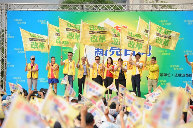 候選人、里長們一波波上台,揮舞法稅改革大旗,朝野大團結共同呼應民意,期許「法稅改革,終結稅災」、「搶救低薪,超徵還民」、「選賢與能,點亮台灣」,提醒大家選出能真正改革法稅制度的賢能者,挽救稅災氾濫的台灣,人民才能過真正安居樂業的生活。法稅改革聯盟發起人之一前台大法律系教授陳志龍表示,台灣行政、立法、司法,三個公權力出了問題,行政權不正義、立法權、司法自己矮化,造成復查與訴願是假的,行政法院是假的,沒有依據法律、證據事實,所以法稅改革正義要以立法、司法、行政三結義開始,選民意代表要選真正幫人民去廢除復查、訴願和解釋函令的候選人。行政裁量權不能過大,不能亂開稅單、編獎金;司法要勇敢站起來,不可以另為適法處分回到稅務單位,正義不可以繞圈圈,沒有終局判決。