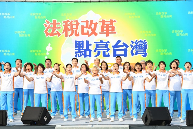 活動中在「祈禱」歌聲下,法稅改革聯盟五位發起人及台灣犯罪被害人人權服務協會副理事長劉承武帶全體「靜心一分鐘」,由一群遭受稅務迫害長達22年的稅災戶代表太極門弟子帶來「世界之愛」歌曲,為稅災哀鴻遍野的台灣祈福,祈願稅災不再。太極門弟子徐小姐表示,太極門稅務冤案在行政法院及財政部訴願會已17次撤銷違法處分,卻仍輪迴在失靈的行政救濟之中,萬年不死稅單尚在殘害著台灣賦稅人權,永無止盡!期盼政府落實法稅真改革,終結稅災,下一代才有未來。