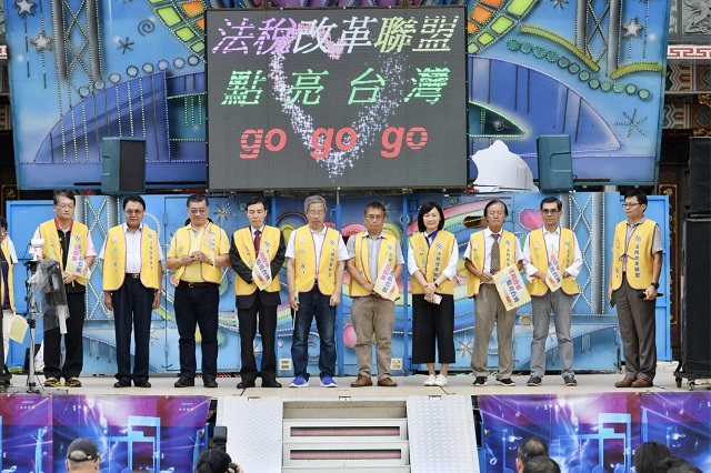 法稅改革聯盟等十多個民間組織團體日前在高雄市廣濟宮廣場舉辦「YOUNG POWER!! 法稅改革 點亮台灣」活動,現場近千民眾參與,希望終結稅災帶給人民的痛苦,國立中興大學法律學系兼任教授張進德,是高雄的女婿,70年代就來高雄從事會計師工作,第一線接觸到民眾與國稅局之間的狀況,他指出,台灣稅制問題非常嚴重,嚴重影響國家整體經濟發展,賦稅改革要解決財稅幫。