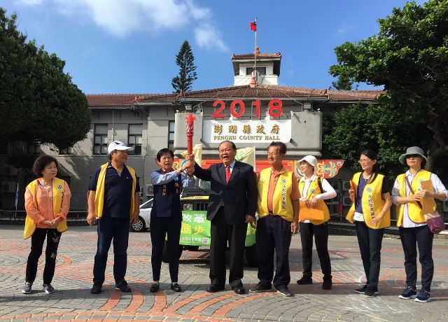澎湖縣縣長陳光復表示,看到台灣各地來的法稅改革聯盟的夥伴就如剛剛在喊的口號––我們尋求真理、尋求正義、尋求公平,大家的心來到世界最美麗海灣––澎湖,傳遞聖火,聖火表示光明、和平,表示追求卓越,希望聖火也能夠照亮澎湖、照亮台灣、照亮所有為這片土地努力的人。