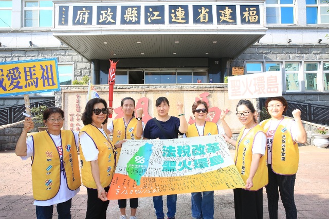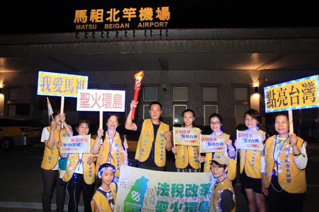法稅改革聯盟發起的稅改聖火環島,9/21將祝福與稅改成功的希望種子帶到馬祖,多位鄉代及村長接續傳遞稅改聖火,表達共同推動「法稅改革 終結稅災」、「搶救低薪 超徵還民」、「選賢與能 點亮台灣」三大訴求,一起督促政府落實「法稅真改革 良心救台灣」,建立公平、透明的賦稅環境。