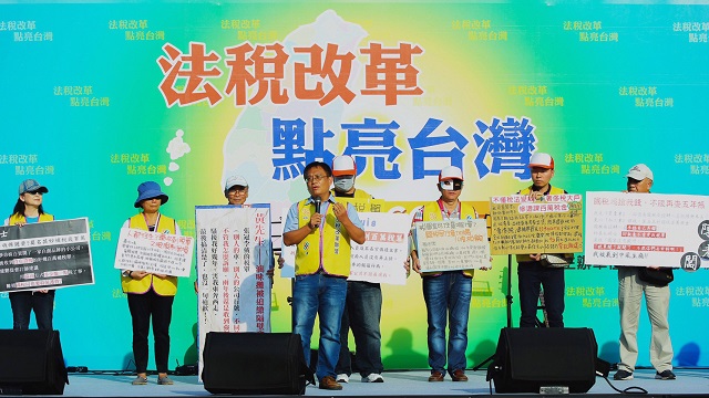 百位里長站出來,揮大旗挺法稅改革,齊喊「法稅改革 台灣加油 Go!Go!Go!」法稅改革聯盟所推動的「稅改五大訴求」、「稅改十大建言」及「賦稅人權宣言」連署,至今全國7,860村里每一村里皆有人參與稅改連署,象徵全國100%的民意!村里長參與稅改連署也達7,353位,13位縣市首長、副首長及1,270位以上的各級民意代表皆完成稅改連署,希望台灣不再有稅災,一起保護台灣這片土地。