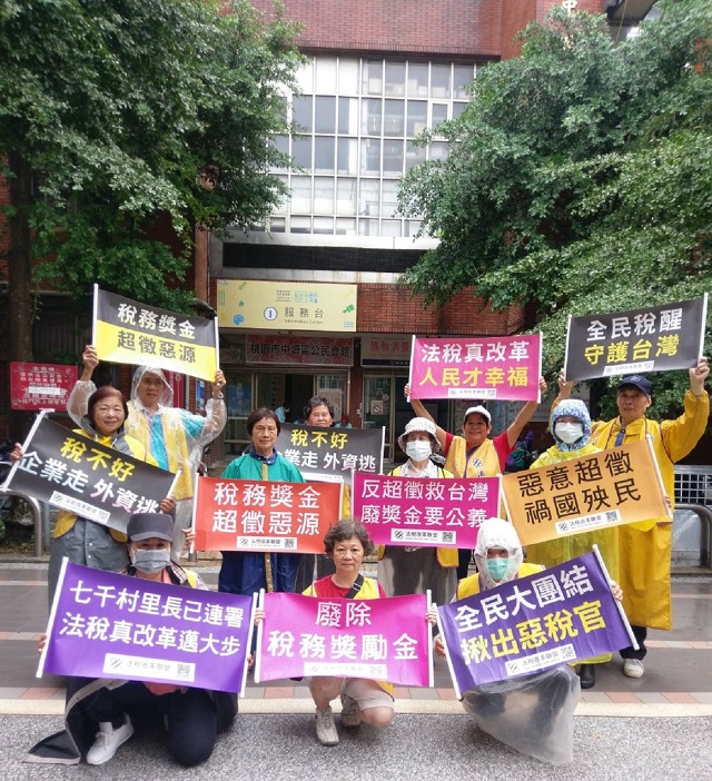 瞿姓志工表示,近日台灣每週一颱經過,連日的豪雨,雨勢不斷,其實「稅災」造成人民的痛苦跟「天災」一樣,稅災戶常收到天上掉下來的烏龍稅單,從此過著慘不忍睹的人生!法稅真改革,終結稅災,讓人民解除痛苦。