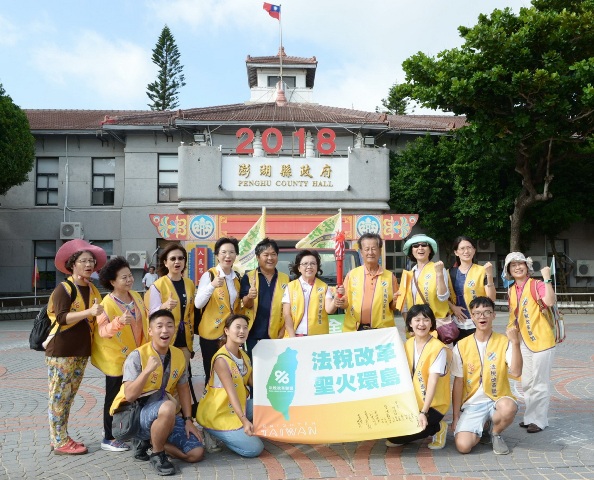 澎湖縣府會、市、鄉、村、里長轄區內所有行政區100%全數參與稅改宣言連署,9月27、28日二天,稅改聖火傳遞澎湖縣政府、議會、馬公市、湖西鄉、白沙鄉、西嶼鄉等地區,總計澎湖地區有1位首長、議會正副議長暨5位議員、2位鄉鎮市區首長、5位代表、28位村、里長、多位貴賓等,迎接稅改聖火或連署稅改宣言,代表澎湖上下同心期盼稅改的心聲。