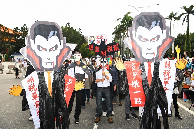 此次的遊行有上萬民眾參與,用kuso的創意裝扮,表達自己的心聲,成為遊行隊伍的焦點。村里長跟民意代表也一同來發聲,百萬網紅國中生小云、高中教師張老師也代表社會各階層發聲,還有受到「租稅暴力」侵害的稅災戶也站上第一線,控訴不公不義的法稅制度,包括中小企業主被稅務機關刁難、喊價,繳不該繳的稅,不得已只好歇業、出走,還有號稱稅法二二八的太極門稅務冤案等,大家共同攜手發聲,期盼改善法稅制度,拯救台灣經濟困境,讓企業、人才根留台灣,搶救自己和孩子的未來。