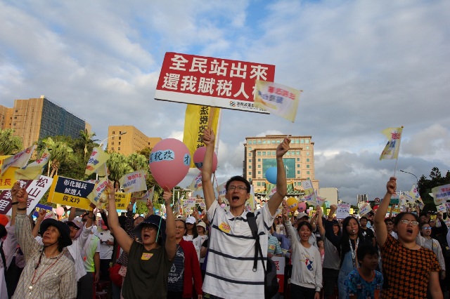 曾在亞洲放光芒的台灣,如今面臨低薪、人才外流、失去國際競爭力!法稅改革聯盟11月4日再度號召上萬民眾從自由廣場啟動「讓孩子留在台灣,稅改大遊行」,以創意隊伍表達對稅制的不滿,最後到凱道齊聲吶喊──「法稅真改革 良心救台灣」,法稅改革聯盟表示:「長期把持台灣稅制的財稅幫GET OUT,台灣才有希望。」