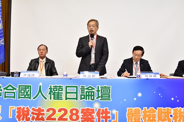 臺灣財經刑法研究學會理事長陳志龍教授表示,有人性尊嚴才有人權。公權力是迫害人權最嚴重的元凶,公權力往往假借名稱來迫害,人權就是人民對於政府公權力的抵抗權,一要對抗公權力的「貪」,打「貪財」和「貪權力」,打近親繁殖,打黑箱作弊;二要反國家霸凌,要達到人人平等、權力分立、互相關愛。法稅改革聯盟做出了台灣人民沒有做過的事,就是打貪、反政府公權力的霸凌。