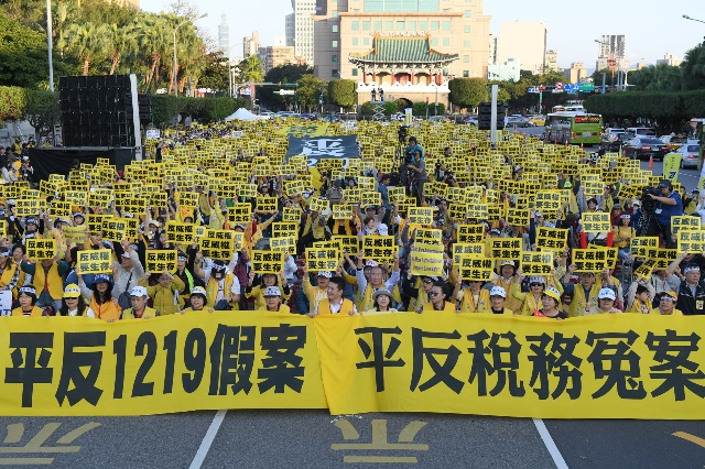 台灣2018年度代表字選出前三名為「翻」、「醒」、「轉」,2018年的台灣,成為全球出生率低、人才外流最嚴重的國家之一,是誰扼殺了台灣生命力?蔡總統說:要堅定改革!但,司法稅法沉痾,除垢了嗎?真改了嗎?蔡總統說:要傾聽民意!但,22年的冤案,您聽見了嗎?1219人權紀念日,人民再度走上凱道,向蔡總統吶喊:「反威權!要生存!」12月19日【台灣黃背心運動 反法稅威權 要賦稅人權】上萬的民眾齊聚凱道,一起向蔡英文總統喊出人民心中最深處的悲痛,並深切期盼政府落實法稅真改革,刻不容緩。