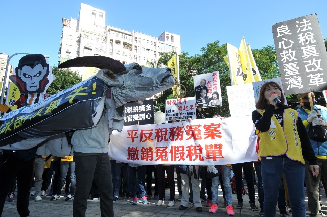 抗議民眾指出,台灣經濟成長率在平均值之下,勞工平均實質薪資所得倒退18年,資金淨流出11兆多,外資投資降到6,800多億,年輕人不婚不生,人才外漂。寶島台灣如此沉淪,輔大企管系助理教授魏賜聰提到,這些都跟財稅有關,從許多的稅務冤案,看到國稅局亂開稅單非常嚴重,許多沒有依法行政,拿解釋函令當聖旨。