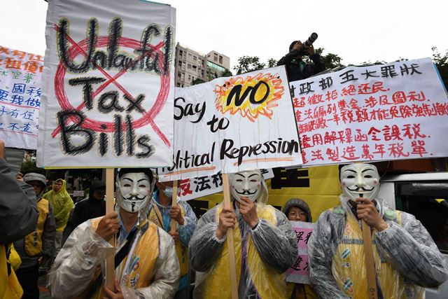 「廢掉國稅局!」「超徵還民天經地義!」「還我轉型正義!」台灣黃背心運動突襲財政部,千人吶喊要求財政部部長蘇建榮出面接受陳情。12月27日人民的怒火延燒到財政部,外牆被蓋滿鮮紅血手印,直指財政部為蔡政府敗選的頭號戰犯,怒批財稅施政犯了五大罪狀。人民不滿台灣經濟凋敝,低薪與貧窮化現象嚴重,外資不敢來,中小企業被掏空,基層人民遭稅務機關濫權逼稅,全球獨有的萬年稅單堪稱破世界紀錄,完全與民意相違背,讓台灣黃背心運動風起雲湧。
