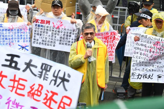 行政救濟失靈,違法稅單滿天飛,許多稅災戶暗夜哭泣,(2018年)12月27日早上陰冷的天氣夾帶著細雨霏霏,高聳華麗的財政部新大樓下,有一群稅災戶跪在冰冷的地上,在寫滿控訴稅災迫害的紙上蓋上血手印,此時飄飄的細雨似乎是老天爺也在為稅災戶哭泣。台灣違法稅單獨步全球,充斥烏龍案件與冤屈假案:簡永松案、吳沛純案、太極門冤稅案等,都是財稅機關濫權課稅,造成斑斑血淚。