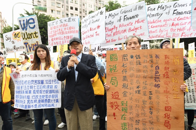 曾受過白色恐怖的簡永松,公司十多年沒營運,過了五年與七年的核課期,稅務機關照樣開單,完全沒有給他說明的機會,只說案件已經送出去了,連監察院告訴財政部是違法,財政部完全不理會,行政法院照抄稅捐機關資料判決,讓他連補帶罰七千萬稅金,到現在還躲不過國稅追殺!他提到財政部不只消費了國民黨,現在繼續消費民進黨,他曾經告訴蔡總統,如果能搞定稅官,江山就得一半,但是完全沒被聽進去,才會造成此次的敗選。他提醒財稅稅官,不要覺得是吃香喝辣,有一天會有報應。他說到:我雖然已經70幾歲,但為了正義我會堅持到底,即使我死了,我的兒子、孫子也會為正義而堅持下去。