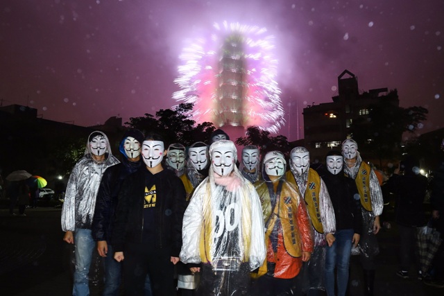 黃背心運動者用電影V怪客「力量來自團結,團結來自信念」的精神,呼籲更多稅災戶站出來,他們現身在101煙火前,用站出來表達政府應該即刻改革,迎接新的一年,V代表Voice of people,一位抗議者說:「新的一年,是人民的一年!政府應該聽進人民的聲音,我們會持續行動,直到政府解決問題。」
