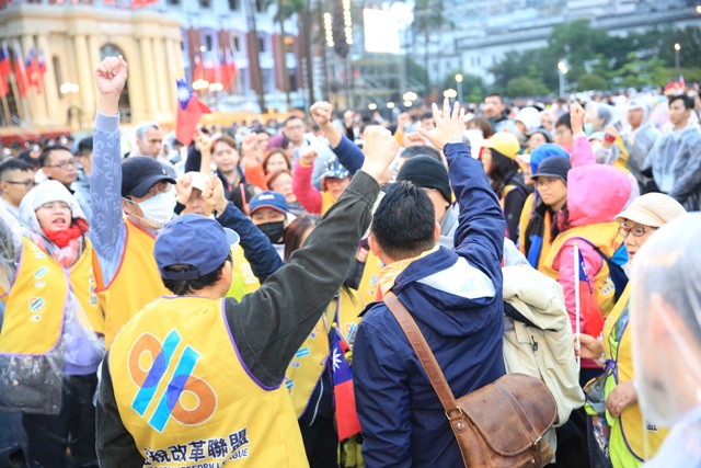 中華民國108年元旦升旗典禮,聚滿各地民眾,儘管空中飄著細雨,熱情民眾在總統府參加升旗典禮,一起唱國歌,注視總統府前的國旗冉冉上升,表達愛台灣、希望台灣更好的心情。最醒目的是很多民眾自動自發穿著黃背心參加升旗,口中高喊著:「反對賦稅暴力」、「法稅改革救台灣」,希望小英總統真正傾聽民意。現場和平理性的訴求,卻因為維安人員反應過度衝過來搶資料。元旦升旗,在各縣市有穿黃背心參加升旗典禮,都是和平理性。