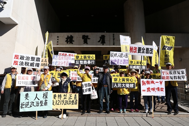 1219人權紀念日,台灣黃背心運動集結上萬民眾以「反威權、要人權」之訴求於凱達格蘭大道舉辦「平反冤稅假案」之倡議活動。一大早「法稅改革聯盟」青年代表與太極門弟子代表共同到立法院陳情,希望立法委員為民伸張正義,本於行政監督職責,督促國稅局撤銷違法稅單,平反太極門稅務冤案。李彥秀委員助理申律師表示,太極門自民國55年成立至今五十餘年,國稅局卻只在民國80-85年對太極門課稅,表示國稅局認為85年後太極門也沒有欠稅問題,這已是國稅局涉及違法課稅的事證。顏寬恒立委表示,民國107年7月最高行政法院判字第422號判決,既然已經認定太極門師徒間之敬師禮為贈與,且指出國稅局在原始稅單上許多謬誤之處,卻仍然堅持對太極門課稅,顯然不當。過去即有多位國民黨立委關心此事,他將整理更完整之資料移交國民黨團,希望能結合黨團之力量及有志一同的立委們,喚醒執政團隊良知,主動終結此一萬年不死違法稅單。