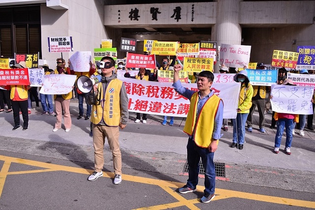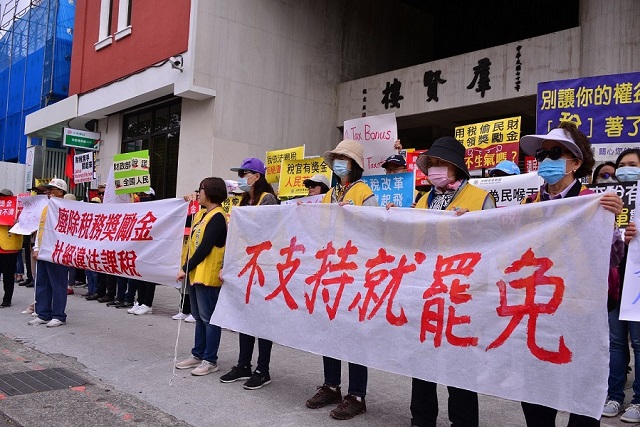 青年代表指出,濫開稅單又領取無法源依據的獎金,觸犯刑法第131條公務員圖利罪!早在2004年民進黨朱星羽等160多位立委就提案通過廢除獎金。然而,2008年沒有法源的稅務獎金卻死灰復燃。2017年遭民進黨立委陳瑩踢爆,財政部編列上億預算,以「作業要點」與行政函令的形式繼續發放稅務獎金,稅務獎金項目五花八門,從辦理路跑比賽、新聞稿業務等都有,幾乎人人有獎,根本就是巧立名目濫發,只是在消化預算。歷年來,各黨派立委均批評獎金違法。