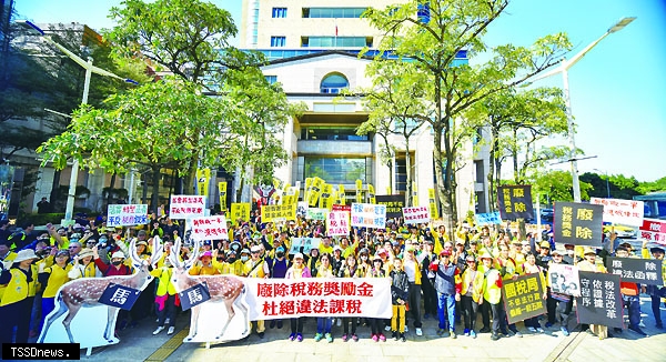 「國稅局長出來面對」、「撤銷違法稅單!」台北國稅局現場民眾,群情激憤吶喊,要求局長許慈美出來面對,解決長達22年的太極門冤稅案。主任秘書張玉枝在多層警力的保護下走出辦公大樓,接受法稅改革聯盟青年的抗議書,對於抗議青年的訴求、記者的詢問,張玉枝不發一語,轉頭就進入國稅局大樓,完全顯現唯我獨尊的傲慢。