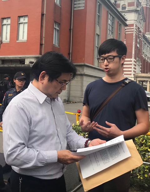小英總統元旦拋出「經濟成長紅利」分享給弱勢民眾的談話,連日來朝野爭議不斷,財政部對於超徵款項的來龍去脈、發放方式以及數字,說法一變再變。連續五年超徵超過共6000多億,究竟這些人民的血汗錢去向何處,至今仍是一團迷霧。1月11日司法節當天,法稅改革聯盟志工一行前進總統府,向總統蔡英文陳情,由公共事務室專員李建忠代表接受,希望總統以愛民之心,主持正義,查明超徵稅款流向,揪出失職官員,終結稅務冤案,還給台灣人民一個公平公正的青天。