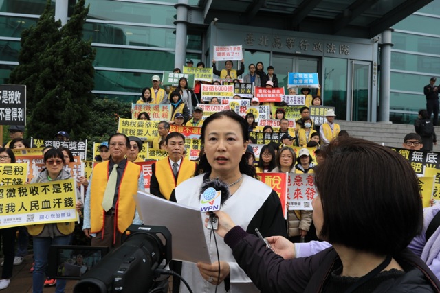 去年遭中選會駁回5案公投,其中受社會矚目的「超徵還民」公投案,領銜人控告中選會嚴重違反行政程序違法駁回提案,今日2/27上午九時在台北高等行政法院被駁回,前來聆聽宣判的群眾感到憤怒及失望!《公投法》主要立法目的是要還權於民,領銜人吳景欽副教授由律師代為發表聲明,表示一定上訴到底,力爭公民應有權利,法院外也聚集近百位法稅改革聯盟志工,高舉標語並吶喊「敗訴法院,上訴到底」,德國大學駐台教授連福隆、輔大魏賜聰助理教授也到場聲援。高等行政法院依舊是敗訴法院,明顯偏袒中選會,犧牲社會正義與公民權利。