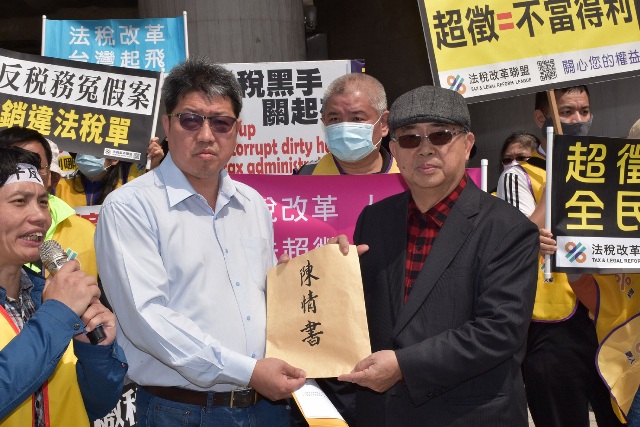 基於此,法稅改革聯盟與平反1219行動聯盟,於本月(3月)13日立法院財務委員會開會期間,上午9時於立法院群賢樓前聚集二百多位志工,向立委遞交陳情書,針對現行《納稅者權利保護法》無法充分保障人權,提出修法建議。同時,沉冤23年的太極門稅務案件乃嚴重違反法律正當程序正義,自始不應開單之冤錯案件,太極門刑事冤案已於2007年判決無罪無稅確定,判決並認定弟子之敬師禮為贈與,依法屬免稅所得。監察院2002年、2009年二度公布調查結果,認定檢察官對太極門之偵辦起訴及國稅局之課稅均有嚴重侵害人權之違法。當年太極門冤案更獲國家冤獄賠償,充分證實太極門之清白。行政法院及財政部訴願會18次裁判太極門勝訴,證實國稅局之課稅處分自始至今均屬違法,要求立委本於行政監督職責,督促稅務機關,依法撤銷違法稅單終結冤案。當天立委吳琪銘助理邱芳翊小姐、立委張宏陸助理詹智翔先生、立委黃國昌辦公室主任賴嘉倫、立委周陳秀霞辦公室主任蘇群超,代表委員接受陳情書。