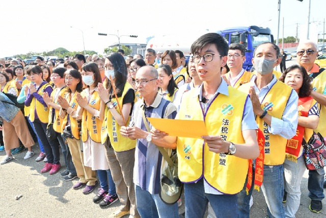 大甲媽祖4月7日晚上10點起駕後,經清水來到沙鹿,上百名身穿黃背心的法稅改革聯盟志工及稅災戶代表,清晨即在路旁恭候鑾駕,青年志工代表軒軒向媽祖娘娘朗聲祝禱,誠心感謝媽祖娘娘庇佑,法稅改革聯盟青年志工去(2018)年法稅聖火得以順利環繞全台,點亮台灣。志工們並陪同受盡冤屈苦痛的稅災戶代表,懇求媽祖娘娘主持公道。台灣稅制亂象橫生,稅吏橫行,荼毒百姓,行政救濟失靈,萬年稅單不滅,惡官當道,人民深陷稅災所苦,志工們祈願媽祖娘娘救苦救難,救救稅災百姓,保佑台灣法稅真改革,所有稅災戶都能獲得平反。